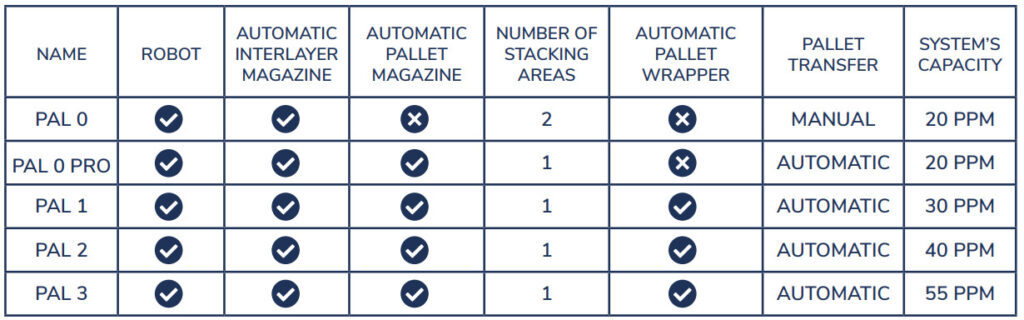 – Possibilité de traiter plusieurs types de produits sur une seule machine de palettisation